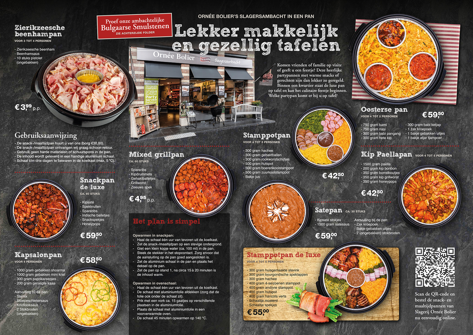 Naast onze ambachtelijke slagerij, hebben wij een uitgebreide maaltijdenkeuken. Het ruime assortiment bestaat uit overheerlijke gegrilde specialiteiten en huisgemaakte maaltijden.Elke dag hetzelfde eten willen we niet! Daarom vindt u in onze toonbank een uitgebreid assortiment aan maaltijden en componenten. U kunt zelf een keuze maken uit de componenten en stelt zo u uw eigen maaltijd samen. Uiteraard altijd voor dezelfde betaalbare prijs!